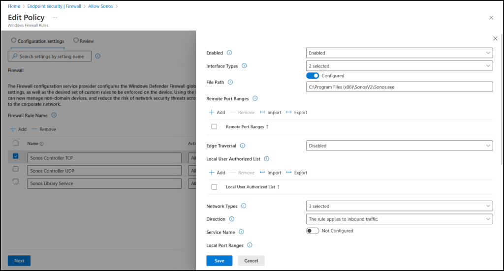 This serves as a dual guide, firstly on how to create and deploy firewall rules using Intune, and secondly how to make that Sonos speaker work!