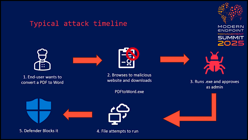 We're going to follow a timeline which represents email delivery of ransomware, and I'll throw a few tips and pointers on what you need to do to reduce or remove the risks along the way.